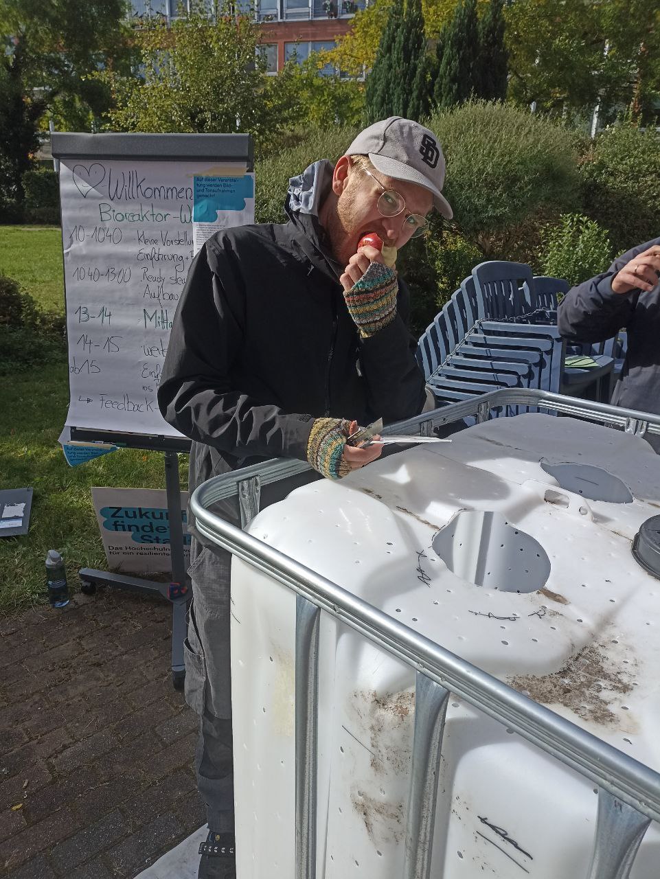In cooperation with the network of open workshops Brandenburg, Malte and Leo built the first IBC bioreactor at Freiland e.V. Potsdam together with committed participants. The reactor creates the perfect conditions for cultivating fungi and nitrogen-fixing soil organisms - a tool for the agriculture of the future. Students at the University of Potsdam create a video tutorial and a handout for farmers as part of the module "Design-oriented research in business informatics".
